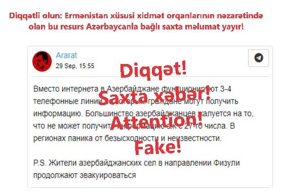 Azərbaycan Ordusunun həyata keçirdiyi əks-hücum əməliyyatlarından sonra işğalçı Ermənistan tərəfindən informasiya məkanında saxta məlumatların yayılması prosesi davam edir.