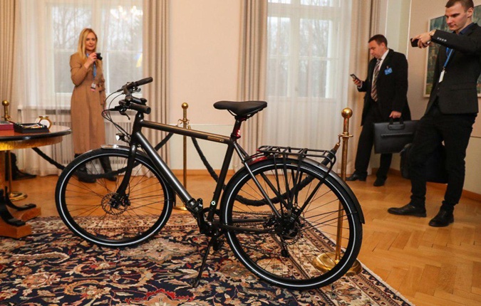 Estoniya Prezidenti Kersti Kalyulayd bu ölkədə rəsmi səfərdə olan ukraynalı həmkarı Vladimir Zelenskiyə velospied hədiyyə edib.