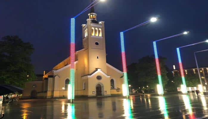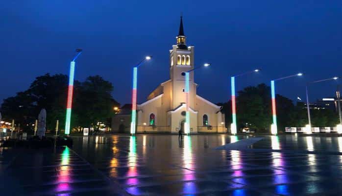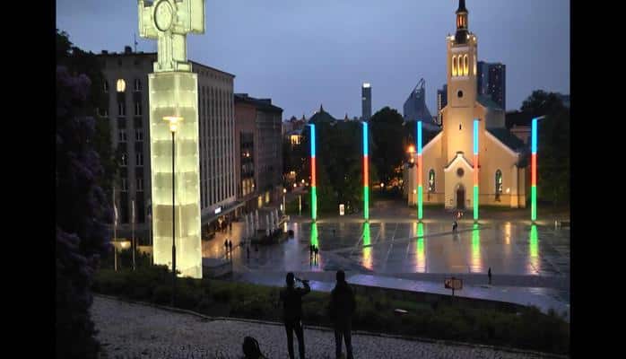 Estoniyanın 'Azadlıq' meydanı Azərbaycan bayrağının rənglərində işıqlandırılıb