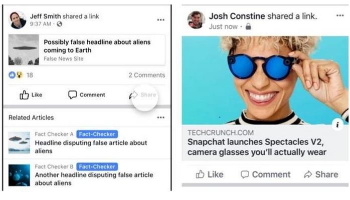 Doğru olmadığı müəyyən edilən xəbərlərin kiçik qutularda göstərilməsinin səbəbi onların maksimum az istifadəçi tərəfindən görülməsini təmin etməkdir. Yalan xəbərlərin bundan sonrakı görüntüsü ilə bağlı nümunələr də paylaşılıb. Belə ki, yalan xəbərlər solda doğru xəbərlərlə müqayisədə çətinliklə görünən ölçüdə olacaq.
