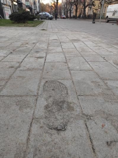 Fəhlələr səkidə “plitə” döşəmə əvəzinə onun təsvirini yaratdılar