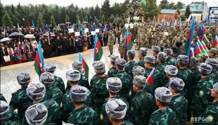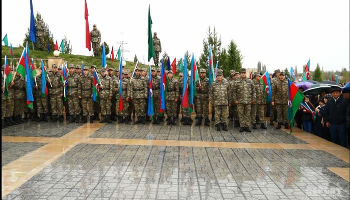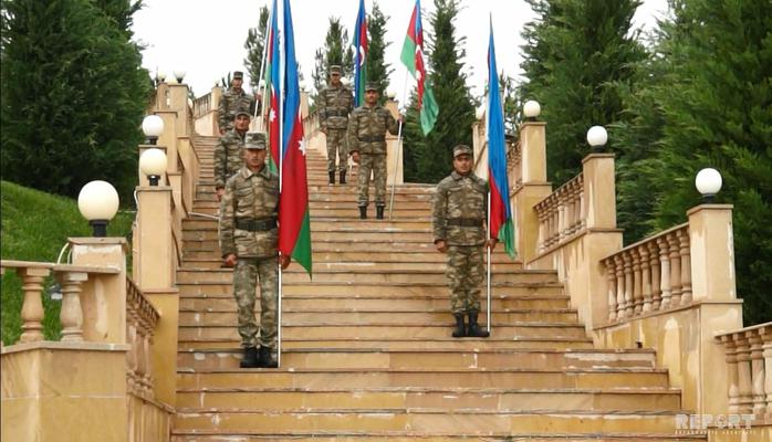 Daha sonra əsgərlər döyüş hazırlığı səviyyəsini nümayiş etdiriblər, məktəblilərin ifasında bayraq haqqında mahnılar səsləndirilib.