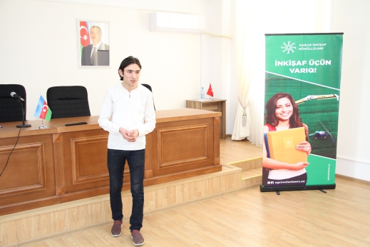 Azərbaycan Respublikasının Gənclər Fondunun maliyyə dəstəyi, "Aqrar İnkişaf Könüllüləri" Təşkilatının təşkilatçılığı və Azərbaycan Dövlət Aqrar Universitetinin tərəfdaşlığı ilə "Gənc Aqronomlar Məktəbi" layihəsi başlayıb. Azərbaycan Dövlət Aqrar Universitetinin Rektor köməkçisi Rufanə Əliyeva aqronomluq sahəsində peşəkarlığın artırılması və gələcəyin aqronomlarının perspektivlərindən danışıb. Layihə rəhbəri Valeh Əsədov çıxış edərək, gənclərin aqrar siyasətin uğurlu tətbiqindəki rolundan və aqronomların bu sahədəki addımlarından danışaraq dünyadakı innovativ metodları misal gətirmişdir.Daha sonra təlimçi Onur Yusubov “Aqrar sahəyə göstərilən dövlət qayğısı” mövzusunda interaktiv təlim keçib və iştirakçıların sualları peşəkar əsaslarla cavablandırılıb.Qeyd edək ki, müsahibə mərhələsindən keçərək "uğurlu iştirakçı" statusu qazanmış 40 gənc 4 gün müddətində müxtəlif mövzulu təlimlərə cəlb ediləcək.Layihənin növbəti mərhələsi çərçivəsində layihə iştirakçıları Göygöl rayonunda yerləşən Dövlət Aqrar İnkişaf Mərkəzinə ekskursiya edəcəklər.