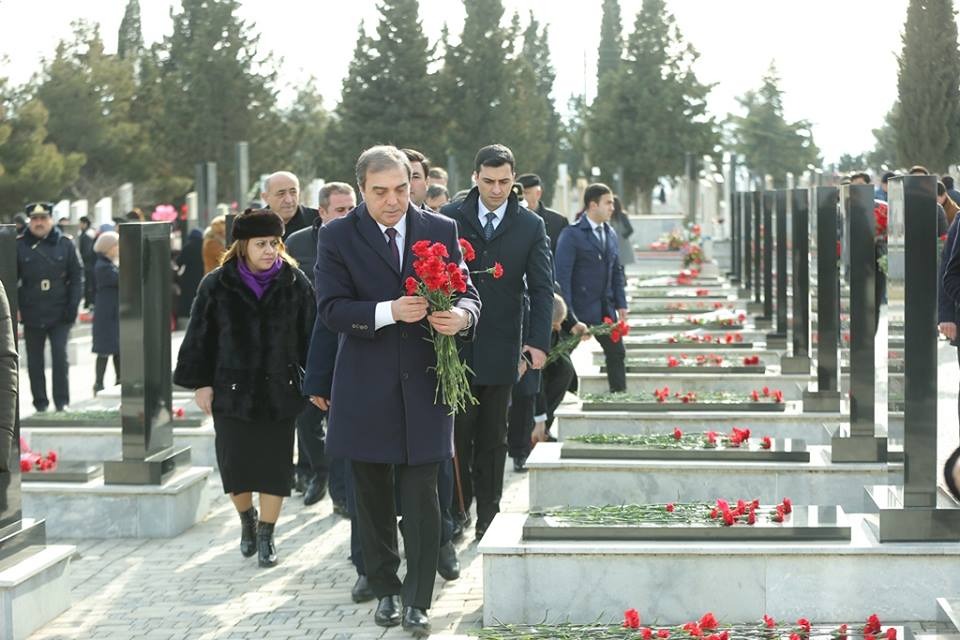 Gəncə şəhər İcra Hakimiyyətinin başçısı Niyazi Bayramov ictimaiyyət nümayəndələri ilə birlikdə şəhid məzarlarını ziyarət edərək onların üzərinə qərənfillər düzüb.