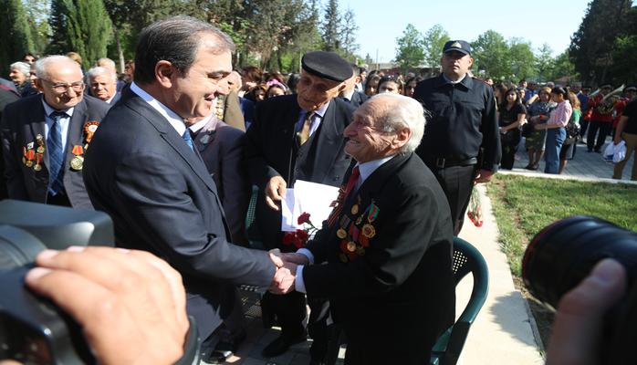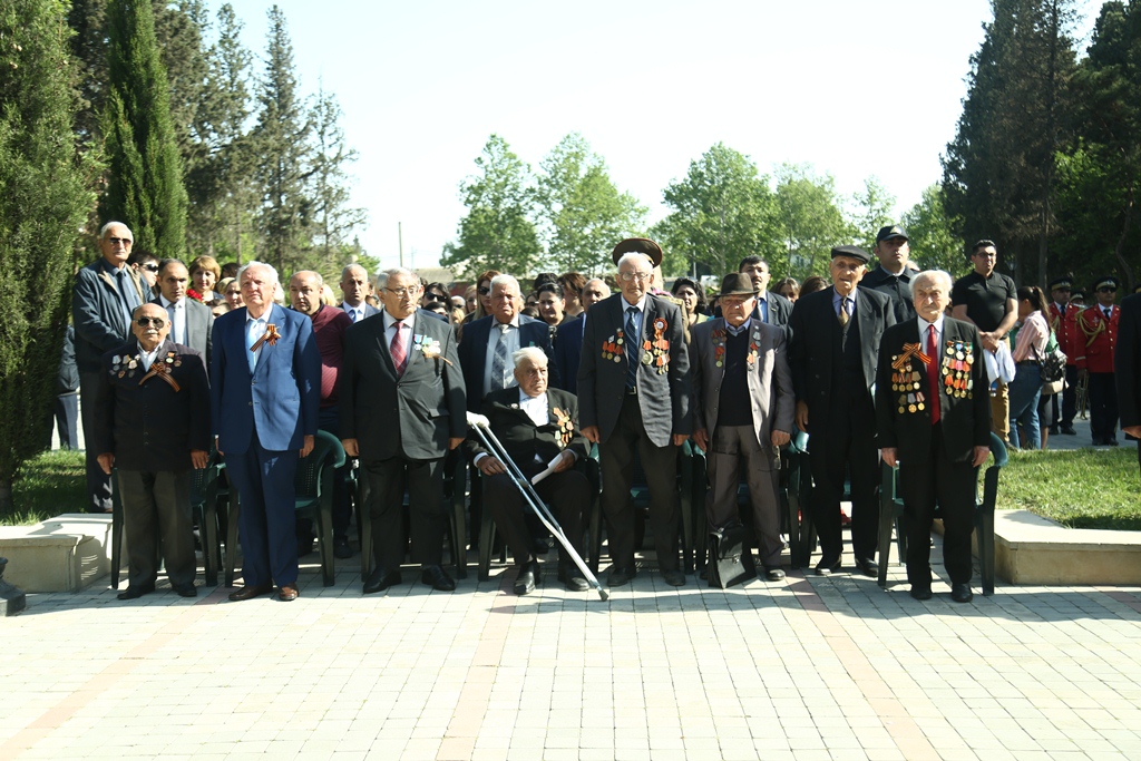 Tədbirdə qeyd olunub ki, Azərbaycan xalqı Böyük Vətən Müharibəsində həlak olanların xatirəsini daim əziz tutur, onları ehtiramla yad edir. Böyük Vətən Müharibəsi iştirakçıları, o cümlədən bütün veteranlar dövlətin diqqət və qayğısı ilə əhatə olunublar. Bu gün Gəncədə 7 Böyük Vətən Müharibəsi iştirakçısı yaşayır. Arxa cəbhə iştirakçılarının sayı 58, Böyük Vətən Müharibəsi iştirakçılarının dul xanımlarının sayı isə 72-dir.