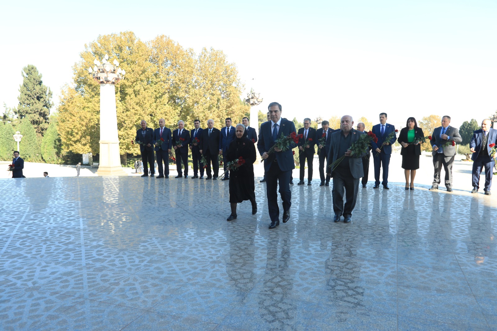 Ens.az Qafqazinfo.az-a istinadən xəbər verir ki, səhər saatlarında Gəncə Şəhər İcra Hakimiyyətinin başçısı Niyazi Bayramov, Türkiyənin Gəncədəki Baş konsulu Recep Öztop, Gürcüstanın Gəncədəki vitse-konsulu Şota Dolidze, millət vəkili Pərvin Kərimzadə,hüquq-mühafizə orqanlarının, idarə, müəssisə və təşkilat rəhbərləri şəhid ailələri və müharibə iştirakçıları Gəncə şəhərinin Şəhidlər Xiyabanını ziyarət ediblər.