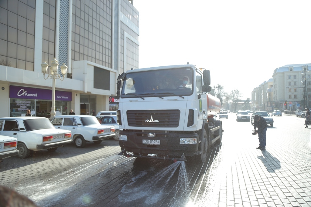 Səhər saatlarından başlayaraq şəhərin küçə və prospektləri xüsusi ayrılmış avtomobillər vasitəsilə dezinfeksiya edici məhlullarla yuyulub. Bununla yanaşı şəhərdə olan çoxmənzilli binalarda dezinfeksiya işləri aparılıb. İşlər xüsusi ayrılmış briqada tərəfindən 4 istiqamətdə həyata keçirilib. İşlərə Gəncə Şəhər MKTİB-in onlarla texnika və yüzə yaxın canlı qüvvəsi cəlb edilib. Gün ərzində Gəncənin Heydər Əliyev, Atatürk və Şah İsmayıl Xətai prospektlərindəki, habelə Cavad xan, Həsən Əliyev, Bahəddin, Keçid, Azərbaycan Bayrağı, Şeyxzamanov, Şahlar Hüseynov, Dədə Qorqud və digər küçələrdə dezinfeksiya işlərinin aparılması nəzərdə tutulub. Binaların girişləri, bloklar, liftlər xüsusi məhsulla dezinfeksiya edilir. Dezinfeksiya işləri şəhərdəki bütün çoxmənzilli binaları əhatə edəcək. İşlər mütəmadi olaraq davam etdiriləcək.
