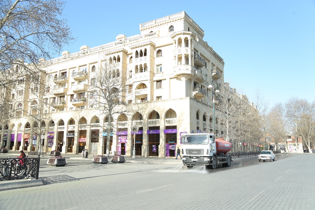 Gəncədə küçə və prospektlər, habelə çoxmənzilli binalar dezinfeksiya olunurlar