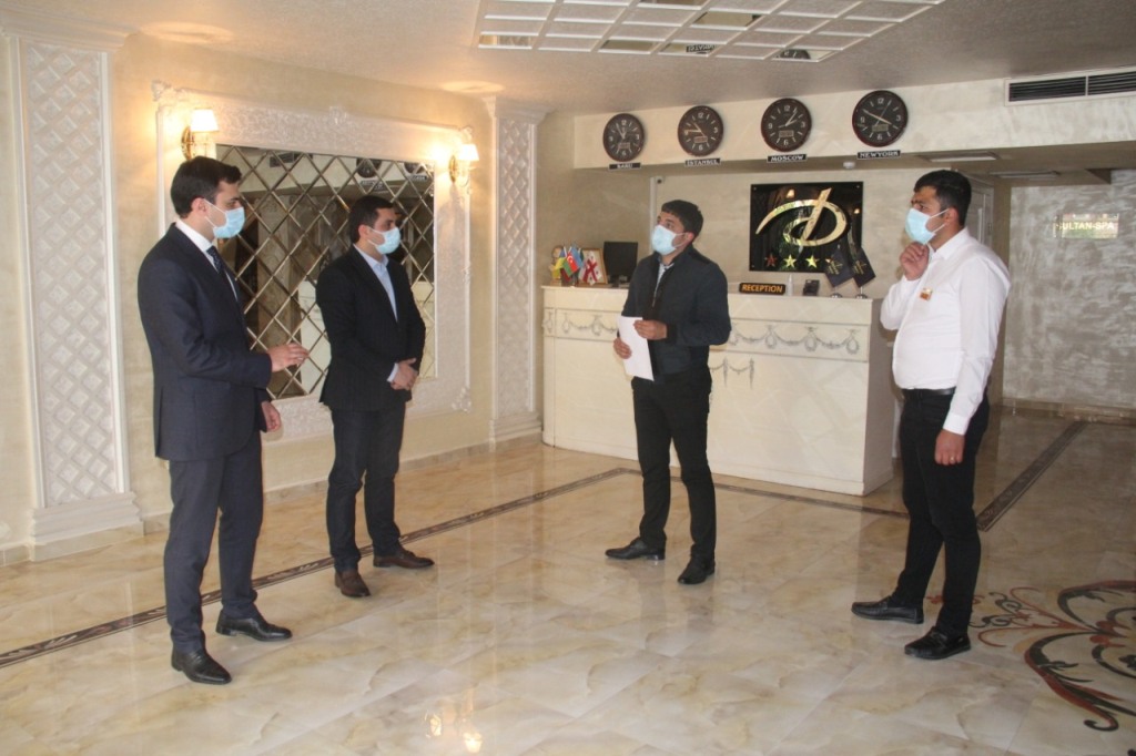 Görüşdə obyekt və otel sahiblərinə xidmət sahələrində koronavirus infeksiyasının idarə olunmasına dair metodiki göstərişlər paylanılıb. Bildirilib ki, metodiki göstərişlər müxtəlif ticarət və xidmət sahələrində çalışan əməkdaşların və vətəndaşların sağlamlığının qorunması məqsədi ilə hazırda koronavirus (COVID-19) infeksiyasına dair aparılan elmi araşdırma faktlarına əsaslanaraq tərtib olunub. Həmçinin, reyd zamanı işçilərə tibbi maskalar da paylanılıb.