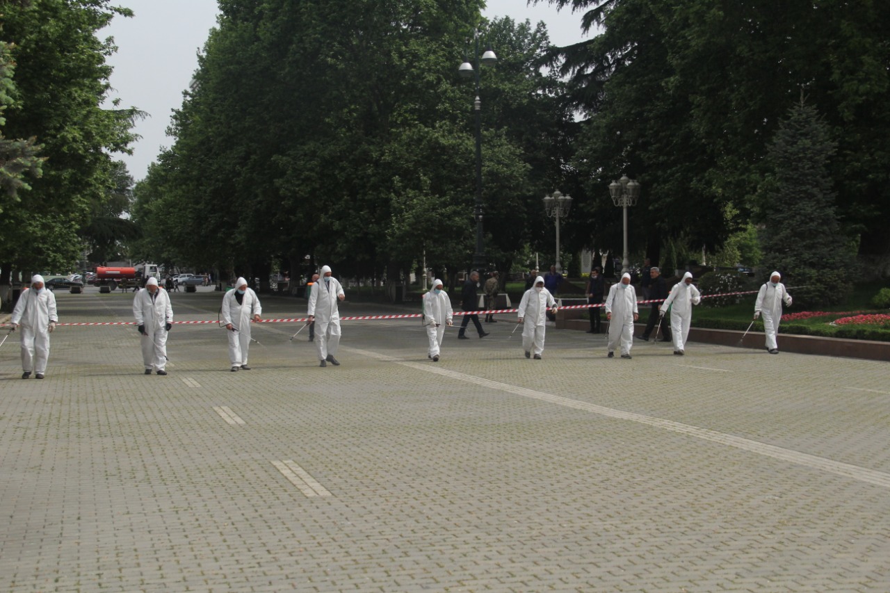 Daha sonra şəhər rəhbərliyi Gəncədə aparılan dezinfeksiya işləri ilə də tanış olub. Bildirilib ki, dezinfeksiya işləri Heydər Əliyev, Atatürk və Nizami Gəncəvi prospektlərində su çiləyici avtomobillərlə həyata keçirilib. Bununla yanaşı mərkəzi küçələrdəki yaşayış binalarının girişləri və ətrafları da dezinfeksiya edilib. Ümumiyyətlə isə Gəncə Şəhər İcra Hakimiyyəti MKTİB-nin xidməti ərazilərində, küçə və prospektlərində, yeraltı piyada keçidlərində, dayanacaqlarda, parklarda, meydanlarda, xiyabanlarda, habelə yaşayış binalarının ətrafında, girişlərində, pilləkən qəfəsələrində, liftlərin içərilərində və əhalinin təmas etdiyi bütün ərazilər mütəmadi olaraq dezinfeksiya olunurlar.