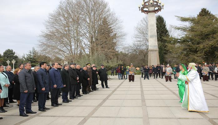 Novruz bayramı münasibətilə təşkil olunan tədbirdə Gəncə Şəhər İcra Hakimiyyətinin başçısı Niyazi Bayramov, Türkiyənin Gəncədəki Baş Konsulu Zeki Öztürk, Gürcüstanın Gəncədəki baş konsulu Mamuka balavadze, şəhər rəsmiləri, ictimaiyyət nümayəndələri iştirak ediblər. Tədbir Gəncə şəhər Heydər Əliyev park-komplakesində təşkil olunub. Qonaqları müdrik el ağsaqqalı Dədə Qorqud salamlayıb, onlara xeyir-dua verib, həmrəylik rəmzi olan odu iştirakçılara təqdim edib və Novruz tonqalı bu odla alovlandırılıb. Yazın müjdəçisi - Bahar qız yurdumuza Novruzun gəldiyini xəbər verib.