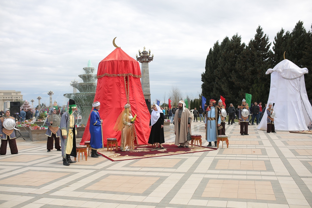 Gəncənin tarixi şəxsiyyətləri Məhsəti Gəncəvinin, Nizami Gəncəvinin, Cavad xanın obrazları canlandırılıb. Onlar insanları humanizmə, doğruluğa, düzgünlüyə və ədalətə səsləyiblər. Cavad xan el igidlərinə şanlı keçmişimizi xatırladıb. Hər kəsi Azərbaycanın bütövlüyü və inkişafı uğrunda həmrəy olmağa çağırıb. Meydanda bəzədilən çadırlar önündə Məhsəti Gəncəvinin ədəbi İrfan məclisi qurulub. Xaqani Şirvani, Qətran Təbrizi, Nizami Gəncəvi, Məhsəti Gəncəvi, Mirzə Şəfi Vazeh və Nigar Rəfibəylinin əsərlərindən nümunələr səsləndirilib.