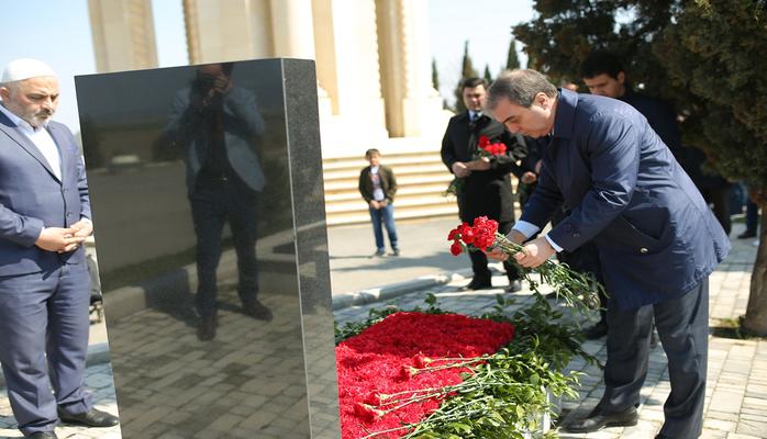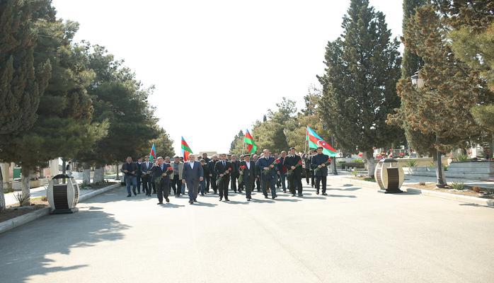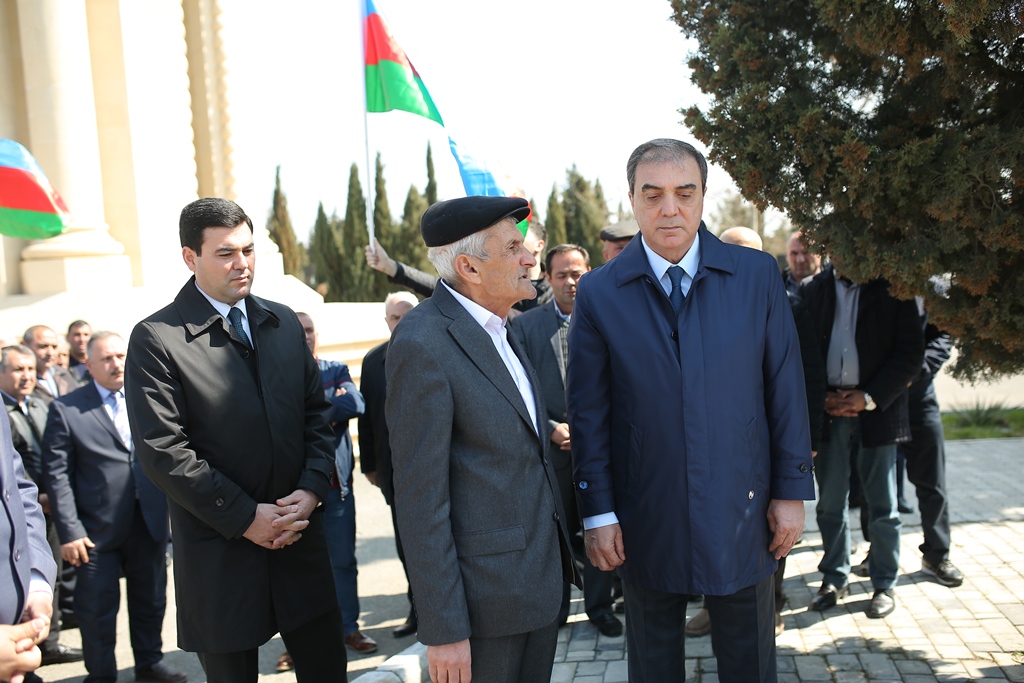 Səhər saatlarında Şəhidlər Xiyabanına gələn Gəncə Şəhər İcra Hakimiyyətinin başçısı Niyazi Bayramov və ictimaiyyət nümayəndələri şəhid Kapitan İnqilab Quliyevin məzarını ziyarət edib, üzərinə tər çiçəklər düzüblər. Şəhidin ruhuna dualar oxunub. Burada Kapitan İnqilab Quliyevin doğmaları ilə görüşən Niyazi Bayramov onlara başsağlığı verib. Şəhidin atası Çingiz Quliyevlə söhbət edən şəhər rəhbəri, ailə üzvlərinin problemləri ilə maraqlanıb. Söhbət zamanı dilə gətirilən bir sıra məsələlərin araşdırılaraq, dərhal aradan qaldırılması istiqamətində müvafiq tapşırıqlar verib.