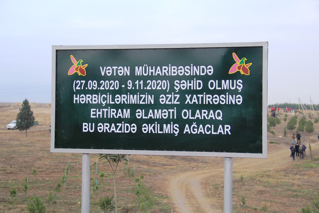 Gəncədə Vətən müharibəsi şəhidlərinin xatirəsinə ehtiram əlaməti olaraq ağacəkmə aksiyası keçirilib. Gəncə Şəhər İcra Hakimiyyətinin təşkilatçılığı ilə baş tutan ağacəkmə aksiyası Heydər Əliyev park-kompleksinin ərazisində reallaşdırılıb.