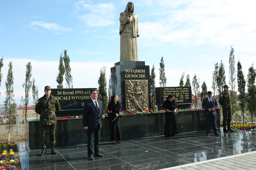 Gəncə şəhər İcra Hakimiyyətinin başçısı Niyazi Bayramov və ictimaiyyət nümayəndələri Xocalı abidəsinin önünə gül dəstələri qoyublar.
