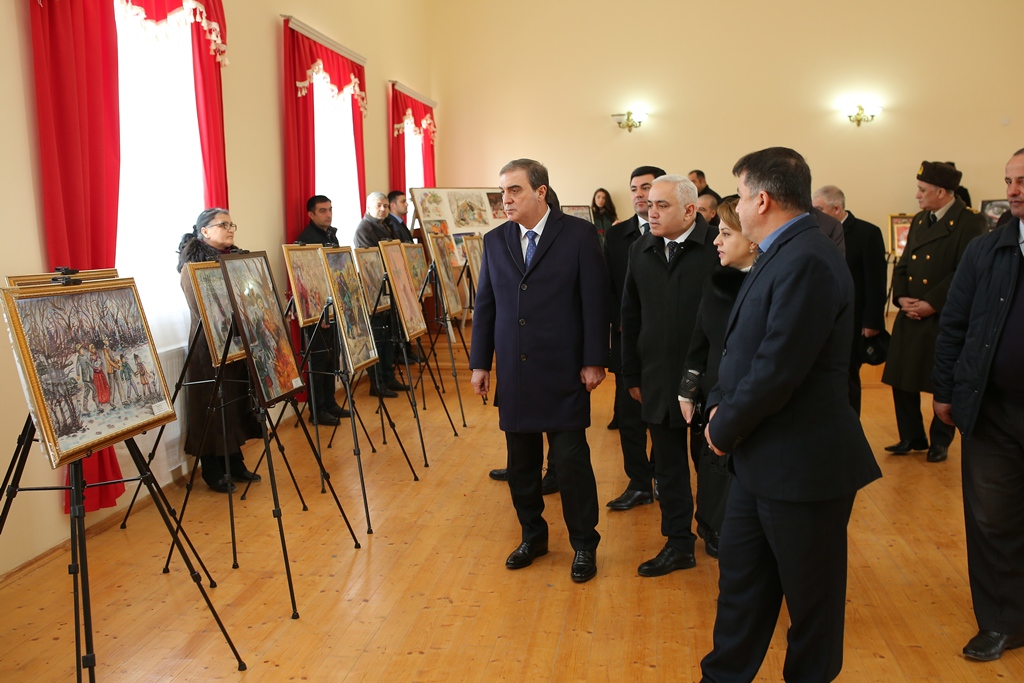 Daha sonra özündə Xocalı faciəsinin dəhşətlərini əks etdirən gənc rəssamların əl işlərindən ibarət sərgiyə baxış olub.