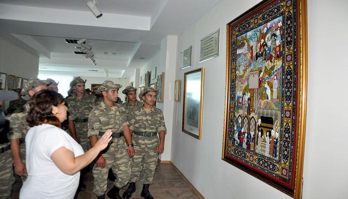 Müdafiə Nazirliyinin mətbuat xidmətindən AZƏRTAC-a bildiriblər ki, ekskursiya çərçivəsində hərbi qulluqçular “Qala Qapıları” Arxeologiya və Etnoqrafiya Muzeyi, Nizami məqbərəsi, Nizami Muzeyi, Məhsəti Mərkəzi və Gəncə Tarix-Diyarşünaslıq Muzeyi ilə yaxından tanış olublar.