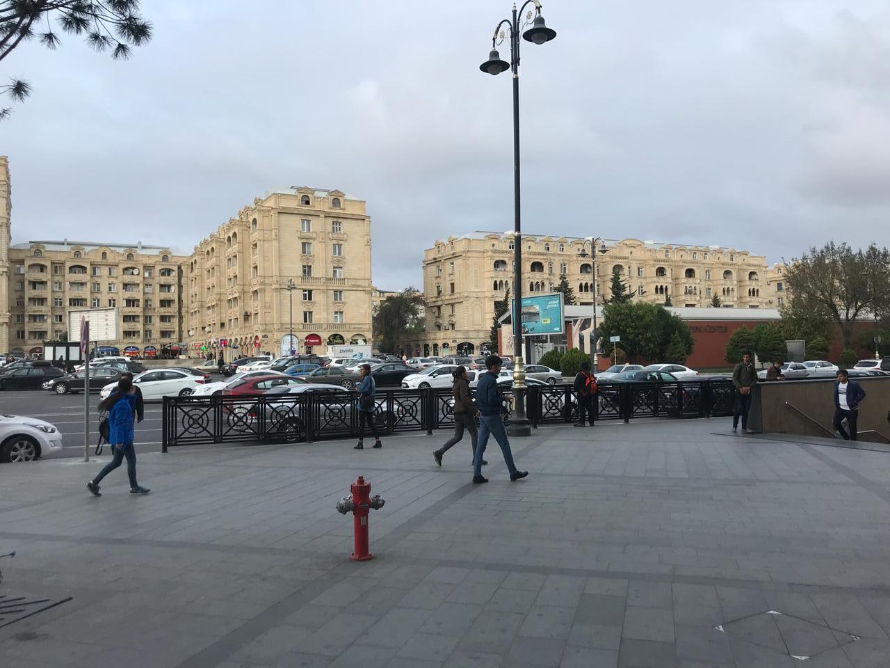 "Gənclik Mall"un qarşısındakı səkinin müəyyən hissəsi dəmir məhəccərlə əhatələnib