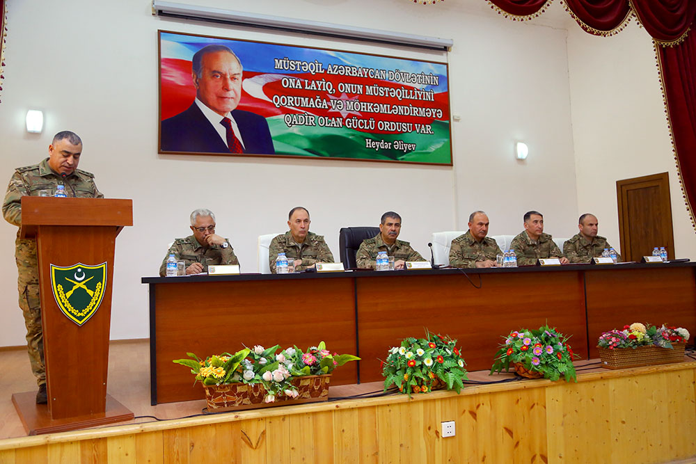 Nazirliyin rəhbər heyəti, birlik və birləşmələrin komandir və qərargah rəisləri, o cümlədən məsul zabitlərin iştirak etdiyi iclasda Müdafiə naziri general-polkovnik Zakir Həsənov “Azərbaycan Ordusunun 2019-cu tədris ilinə vəzifələrinin dəqiqləşdirilməsi” mövzusunda məruzə ilə çıxış edib.