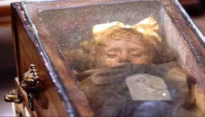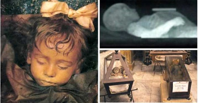 Qızını itirən Lombardo övladını ölümsüzləşdirmək istəyib. Bu işi həyata keçirəcək adamı isə Siciliyada tapdı. Mumiya üzrə mütəxəssis Alfredo körpənin meyitini mumiyalayaraq şüşədən hazırlanmış bir məzarın içinə qoydu. Amma həkim mumiyalamada hansı üsuldan istifadə etdiyini heç kəsə demədi və sirrini özü ilə qəbirə apardı.