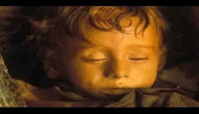 “Ölkə.Az” xəbər verir ki, taxta beşiyə yerləşdirilmiş şüşə tabutun içindəki qız uşağının mumiyası müntəzəm olaraq gözlərini yumub açır.