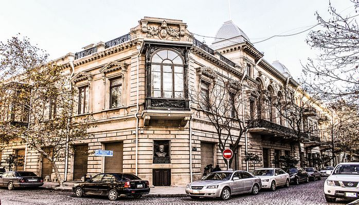 Binanın bütün fasadlarına Bakı karxanalarından gətirilən daşlardan üz çəkilmişdir. Bakı memarları öz səmərəli təcrübələrində fasadın memarlığına təsir edən qədimi tikintilərdən müvəffəqiyyətlə istifadə edirdilər. Birinci mərtəbənin düzbucaq mütənasibliyi iri, yonulmamış bloklarla hörülməsi, daş hörməsini ifadəli, bütöv sistemə çevirmişdir. Saray tikintisinə məxsus olan mərkəzi girişin yoxluğu xüsusilə vurğulanmışdır. Evə gələnlər iki əsas qapıdan geniş, memarlıq və məkani cəhətdən yaxşı işlənmiş zala daxil olur. Fasadın üzərində İtaliya intibah memarlığı tam hazırlıqla klassik üsul və formaları ilə özünü göstərir. Şərq və Avropa zalları fasadın üzərində ümumiləşdirilmiş yarımdairəvi tağları ilə memarlıq kompozisiyasının vacib elementi kimi göstərilib, yumru sütunlara antablementlərlə dirənir.