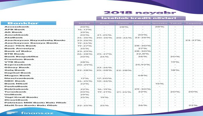 "Finans.az" Azərbaycanda fəaliyyət göstərən bankların istehlak və biznes kreditləri üzrə təqdim etdikləri faiz dərəcələrini araşdırıb.