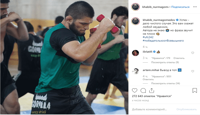 Ens.az xəbər verir ki, hazırda Abu-Dabidə Dastin Porye ilə görüşə hazırlaşan Yüngül çəkidə UFC çempionu Həbib Nurməhəmmədov Instagram-da ist