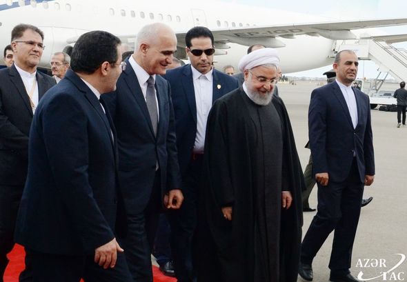 İran Prezidenti Həsən Ruhanini hava limanında Azərbaycan Respublikası Baş Nazirinin müavini Şahin Mustafayev, Xarici İşlər nazirinin müavini Nadir Hüseynov və digər rəsmi şəxslər qarşılayıblar.