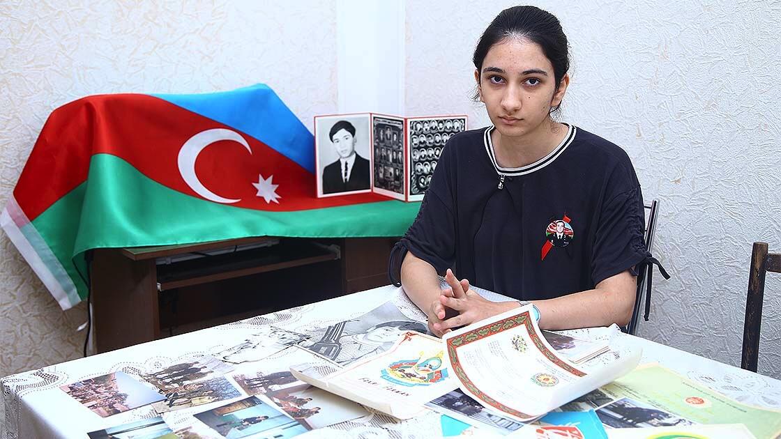 Onun yaşadığı evin pəncərəsində yan-yana asılan Azərbaycan və Türkiyə bayraqları diqqət çəkir...
