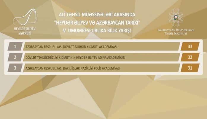 Qeyd edilib ki, “Heydər Əliyev və Azərbaycan tarixi” V ümumrespublika bilik yarışında 47 ali təhsil müəssisəsinin komandaları iştirak edib. Azərbaycan İlahiyyat İnstitutu, M.V.Lomonosov adına Moskva Dövlət Universitetinin Bakı filialının komandaları bu il ilk dəfə olaraq müsabiqəyə qoşulublar.