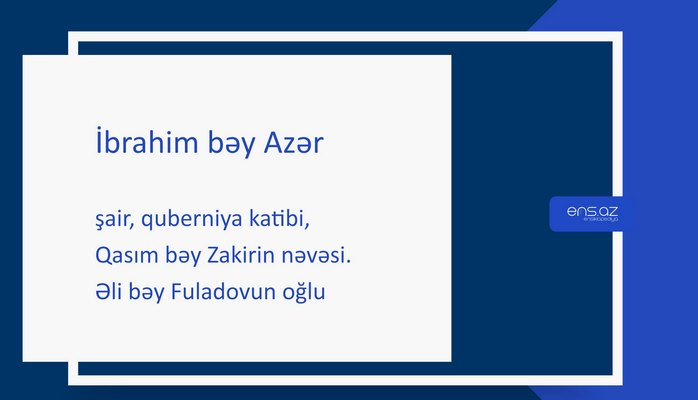 İbrahim bəy Əli bəy oğlu Fuladov - şair, quberniya katibi, Qasım bəy Zakirin nəvəsi. Əli bəy Fuladovun…
