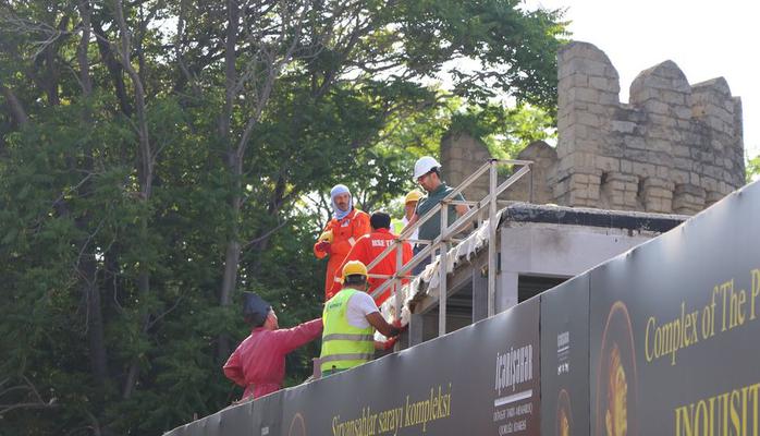 Arxeoloqlar Kamil İbrahimov və İdris Əliyev deyirlər ki, Qoşa Qala qapısının yanındakı plastik bannerlərin arxasında köhnə hamamım bərpası prosesi gedir və orda istifadə edilən yeni daşlar orijinallarla eyni növdən olduğu üçün bunu normal qəbul etmək olar.