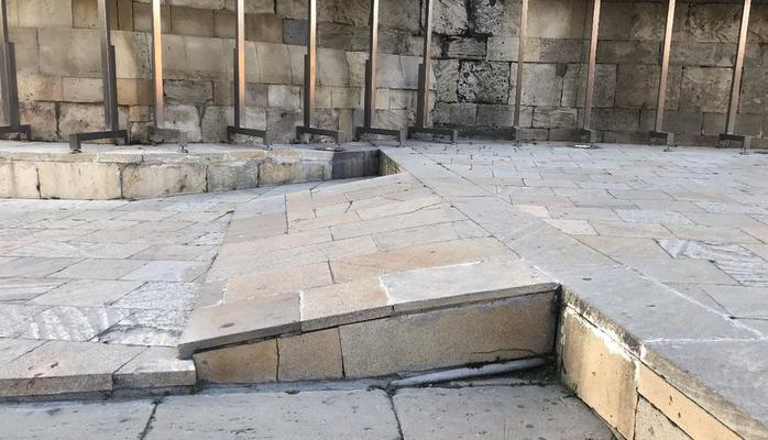 Əvvəllər burda kiçik bağça olub, 2010-cu ildə aparılan qazıntı işlərindən sonra isə ərazidə üç restoran tikilib, həm də birini arxeoloqların aşkar etdiyi qədim tikilinin düz üstündə inşa ediblər.