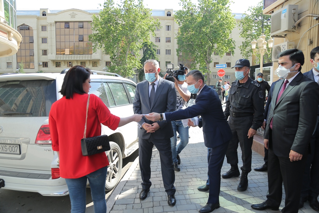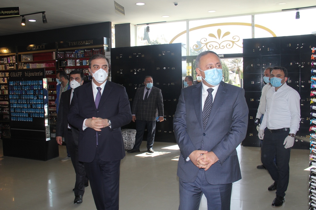 Niyazi Bayramov və Əkbər İsmayılov şəhərdə fəaliyyət göstərən iri market və mağazalara, geyim dükanlarına baş çəkib, qeyd olunan məkanlarda xüsusi karantin rejiminin tələblərinə hansı səviyyədə əməl edildiyi ilə yerində tanış olublar. Şəhər rəhbəri apteklərdə kifayət qədər tibbi maska, spirt və əlcəklərin olub-olmaması ilə maraqlanıb. Əczaçılar bildiriblər ki, satışda kifayət qədər tibii maska, spirt və əlcək mövcuddur. Bununla yanaşı bank və ATM-lərin qarşısında dayanan vətəndaşlarla söhbət aparılıb, növbə zamanı 2 metrlik ara məsafəsinin gözlənilməsinin vacibliyi bir daha xatırladılıb.