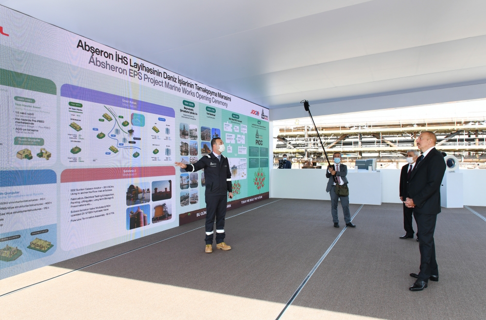 Azərbaycan Respublikasının Prezidenti İlham Əliyev sentyabrın 19-da Heydər Əliyev adına Bakı dərin özüllər zavodunda “Abşeron” yatağının dəniz əməliyyatlarının təməlqoyma mərasimində iştirak edib.