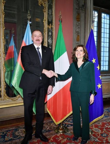 AZƏRTAC-ın xüsusi müxbiri xəbər verir ki, Senatın Sədri Maria Elisabetta Alberti Kaselatti dövlətimizin başçısı İlham Əliyevi qarşıladı.