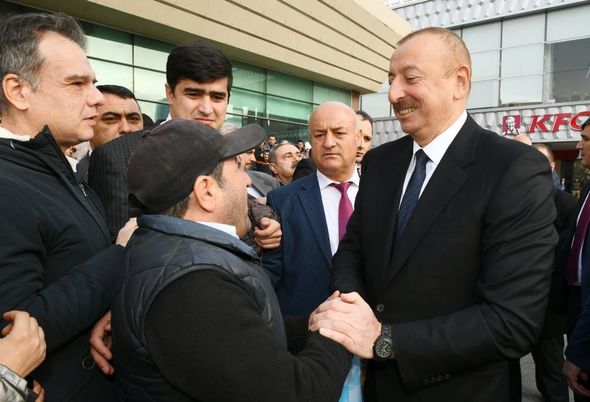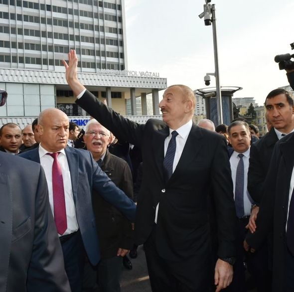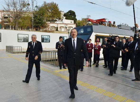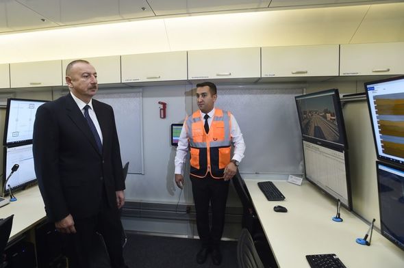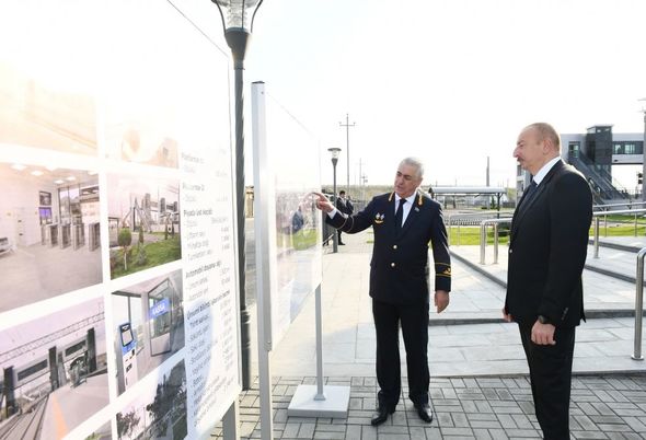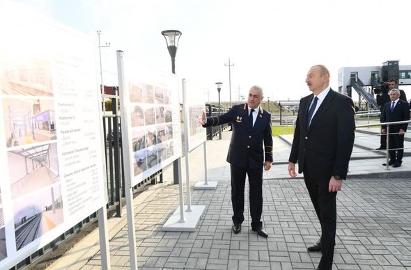 Dövlətimizin başçısı stansiyanın rəmzi açılışını bildirən lenti kəsib.