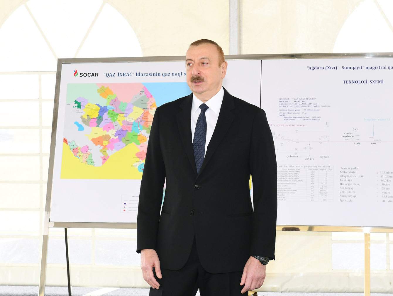 Azərbaycan Respublikasının Prezidenti İlham Əliyev aprelin 24-də Abşeron rayonunun ərazisində Xızı rayonunun Ağdərə kəndindən Sumqayıt şəhərinə çəkilən magistral qaz kəmərinin açılışında iştirak edib.