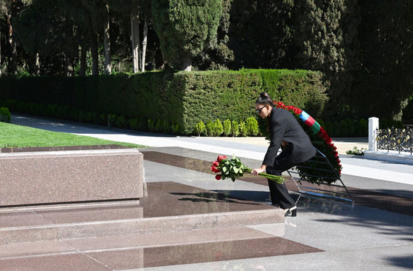 Sonra birinci xanım Mehriban Əliyeva ümummilli liderin xatirəsini dərin hörmətlə yad edib.