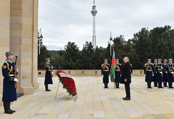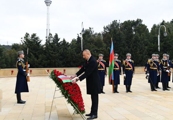 AZƏRTAC xəbər verir ki, dövlətimizin başçısı “Əbədi məşəl” abidəsinin önünə əklil qoyub.
