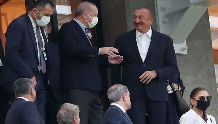 İlham Əliyev və Rəcəb Tayyib Ərdoğan Türkiyə millisinin oyununu izləyir