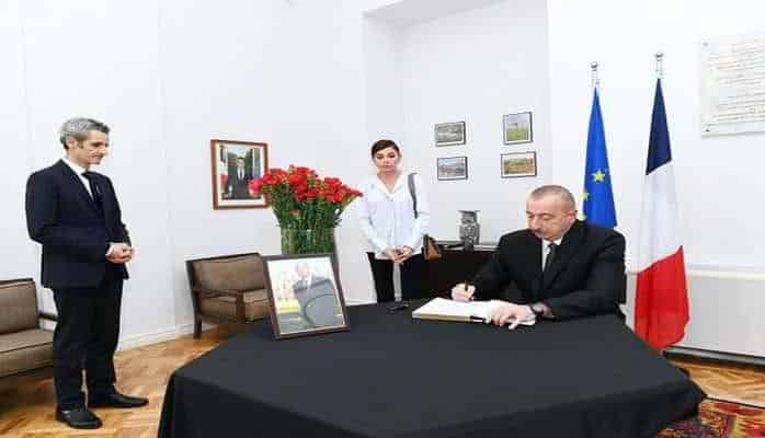 Azərbaycan Respublikasının Prezidenti İlham Əliyev və birinci xanım Mehriban Əliyeva sentyabrın 27-də Fransa Respublikasının ölkəmizdəki səfirliyinə gələrək, Fransanın sabiq Prezidenti, görkəmli dövlət xadimi Jak Şirakın vəfatı ilə əlaqədar başsağlığı veriblər.