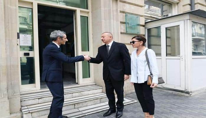 Axar.az xəbər verir ki, Fransa Respublikasının ölkəmizdəki fövqəladə və səlahiyyətli səfiri Zakari Qros Prezident İlham Əliyevi və birinci xanım Mehriban Əliyevanı qarşılayıb.