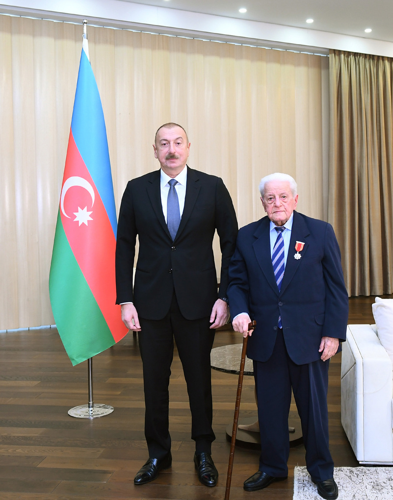 Azərbaycan dövləti sizin fəaliyyətinizi çox yüksək qiymətləndirir, Azərbaycan xalqı da həmçinin. Siz 20 il bundan əvvəl ulu öndər Heydər Əliyevin Sərəncamına əsasən “Şöhrət” ordeni ilə təltif olunmusunuz. On il bundan əvvəl mənim Sərəncamımla “İstiqlal” ordeni ilə təltif edilmisiniz. Bir həftə bundan əvvəl - fevralın 4-də “Şərəf” ordeni ilə təltif olunmusunuz. İcazə verin, bu ordeni sizə təqdim edim.