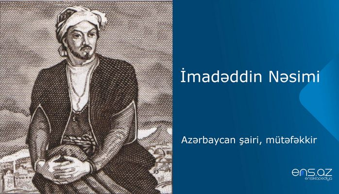 İmadəddin Nəsiminin tam adı - Seyid Əli Seyid Məhəmməd oğlu İmadəddin Nəsimi (1369-cu il, Şamaxı - 1417-ci il, Hələb) — Azərbaycan şairi, mütəfəkkir. "İmadəddin Nəsimi" adı ilə məşhurdur. İlk təhsilini Şamaxıda almış, dövrün elmlərini, dinlərin tarixini, məntiq, riyaziyyat və astronomiyanı öyrənmişdir.