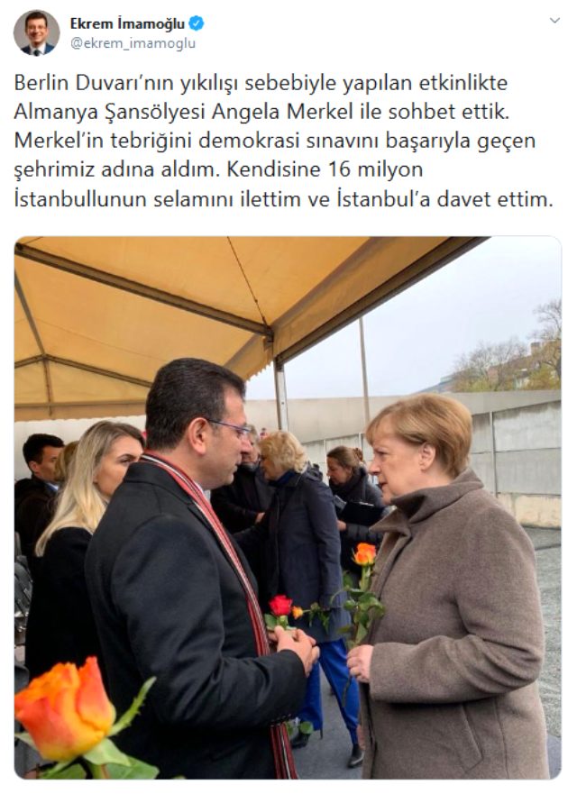 “Berlin divarı”nın yıxılmasının 30-cu ildönümü münasibətilə Almaniyaya gedən İstanbul Böyükşəhər Bələdiyyə sədri Əkrəm İmamoğlu kanlser Angela Merkellə görüşüb.