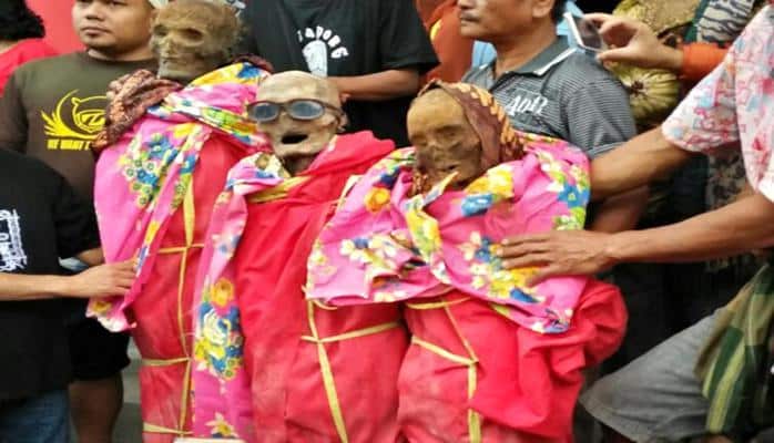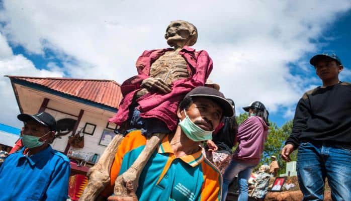 Ötən gün Maeaen məhsul bayramı zamanı Torajada Lembanq Lempo Poton kəndində yeni fotolar çəkilib. Cənubi Sulavesi adasındakı Toraja xalqı ailə münasibətlərinin ölümlə başa çatmadığına inanır. Yerli sakinlər hər il qohumlarının meyitlərini qəbirdən çıxarır, təmizləyir və geyindirirlər.