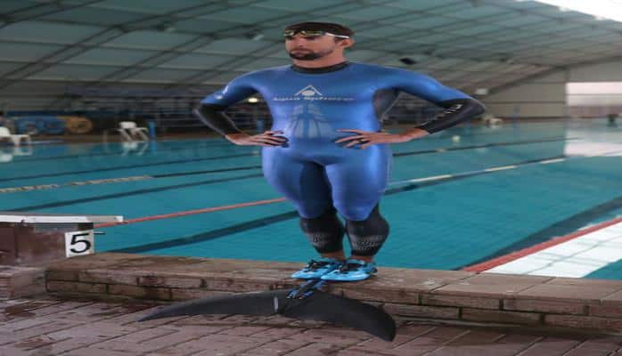 İmkanları bir qədər bərabərləşdirmək üçün ABŞ üzgüçüsü ayaqlarına hətta "monofin" də taxıb.