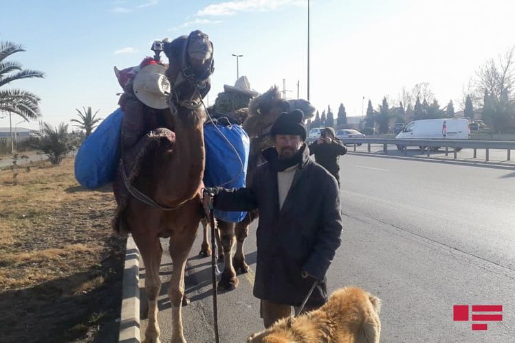 İranın cənubundan dəvə ilə səyahətə çıxan turist 9 ay sonra Gəncəyə çatıb